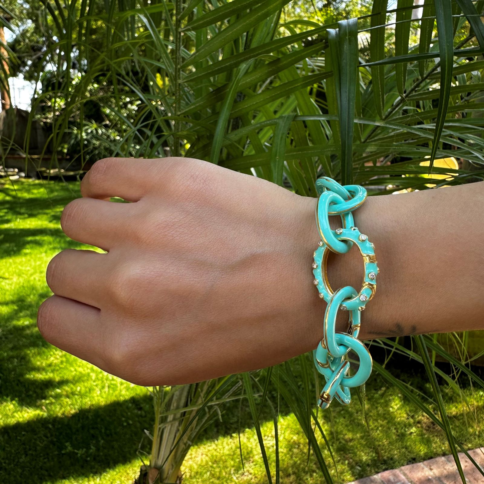 The GiGi Bracelet (Tiffany Blue) Written by Taylor Golonka on May 8, 2024 $660.00 Lab Diamonds- Enamel- Gold Plate 8.5″ (Removable Links) Available on backorder The GiGi Bracelet (Tiffany Blue) quantity Add to cart Category: Bracelets Related products The GiGi Bracelet (Pink Marble) $660.00 Add to cart The GiGi Bracelet (Periwinkle) $660.00 Add to cart The GiGi Bracelet (Neon Yellow) $660.00 Add to cart The Callie Bracelet (Periwinkle, w/ Lab Diamonds) $660.00 Add to cart